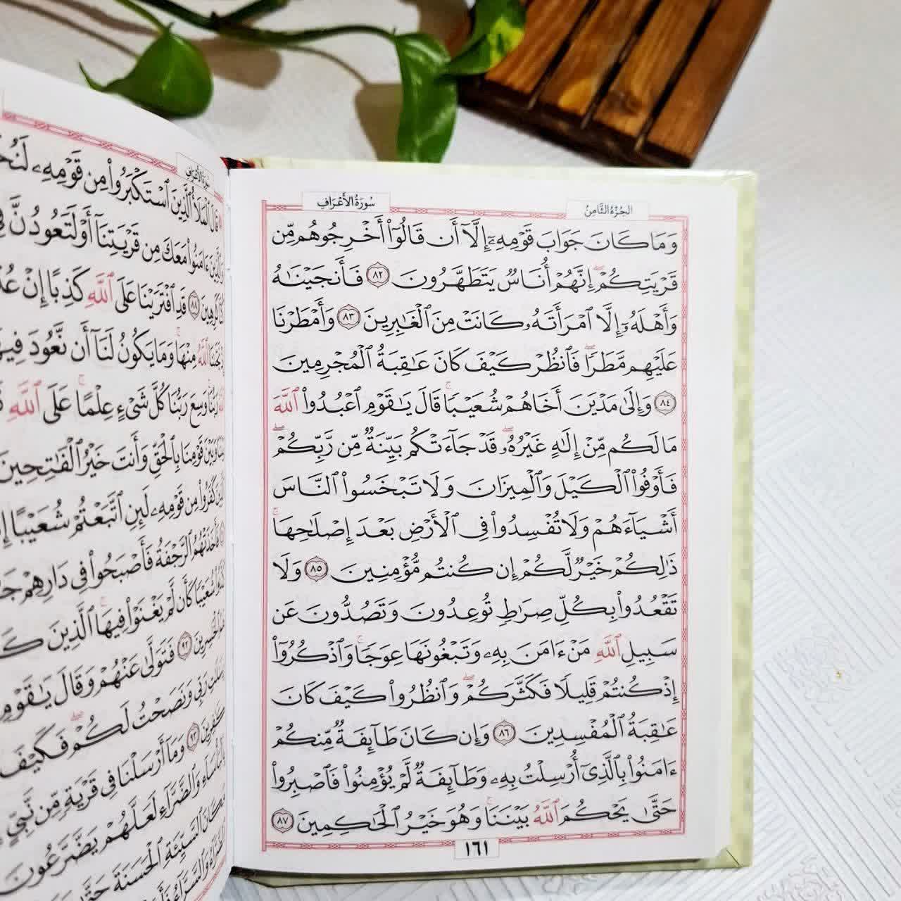 اگر به دنبال یک قرآن زیبا، سبک و در عین حال کاربردی برای حفظ و تلاوت روزانه هستید، این قرآن جیبی انتخابی ایده‌آل برای شماست. زمینه صورتی ملایم صفحات جلوه‌ای آرامش‌بخش به متن قرآن داده و خط درشت و خوانای عثمان طه باعث می‌شود مطالعه و حفظ آیات برای حافظان قرآن و علاقه‌مندان بسیار آسان شود.